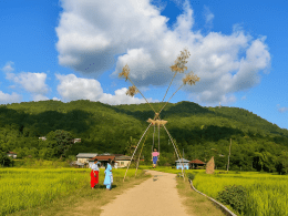Sa: Paru or Gaijatra falls in the month of July. It is a festival to show honor to the deceased ones in the past year by the respective families. It was initiated by a Malla King, Pratap Malla who was concerned about his wife who was mourning for the death of their son. He decided to cheer her up through comic activities which also means never to mourn long for the deceased ones. Every year in Bhaktapur, there is music and the stick dance where the families of the deceased ones move around the city.