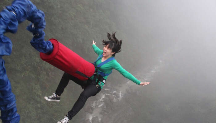 You can bungee jump from two places-Bhote Koshi Gorge and Hemja, Pokhara. But, you can experience the highest bungee jumping in Nepal from Bhote Koshi. It is located across the suspension bridge across the Bhote Kosi River. Bungee jumping is highly adventurous because you will fall from a height of 160 m.