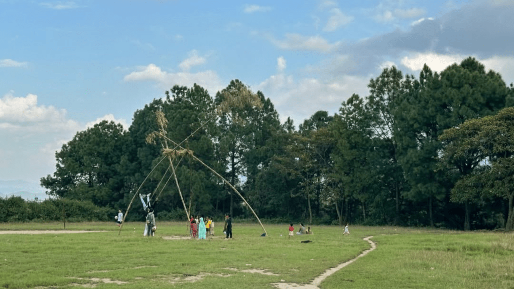 The Linge Ping swings are traditionally made from bamboo and jute ropes, often shaped like a Shiva Linga. The ritual of swinging is tied to the belief that one should leave the ground at least once during Dashain to attract blessings, good fortune, and spiritual merit. Beyond their spiritual symbolism, these swings serve as community hubs, where laughter, joy, and celebration bring people together.