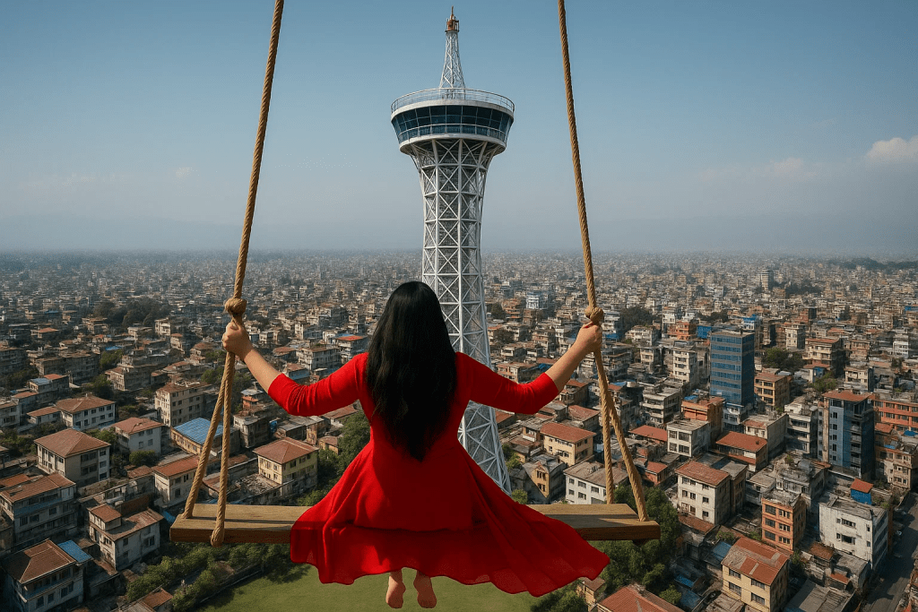 The Skywalk area in Kathmandu is among the most popular spots for Dashain swings. Traditional bamboo swings are set up during the festival, offering families and children a chance to celebrate in the heart of the city. [Source: Facebook Reel]