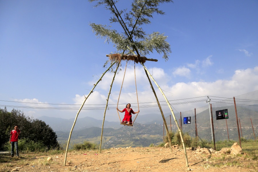 Near Sundarijal, the Army Barrack area sets up swings as part of local celebrations, blending military and community festivities in a unique way.