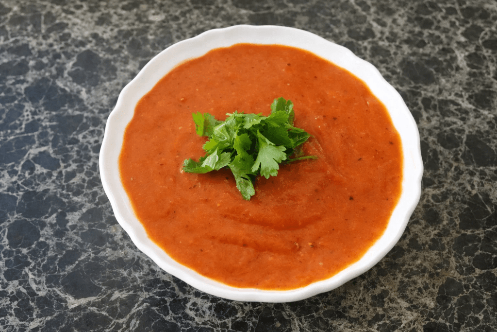 - Classic momo achar (tomato + sesame base, roasted and blended)