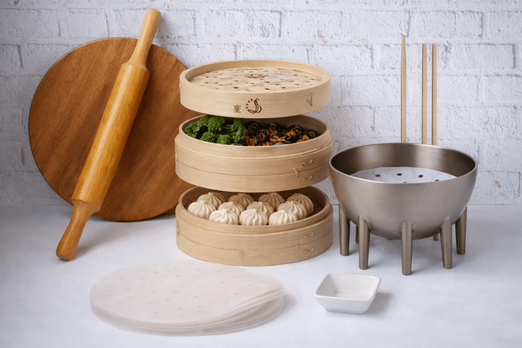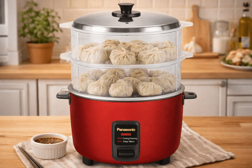 - A steamer (momo steamer, bamboo steamer, or any pot + steaming rack)
