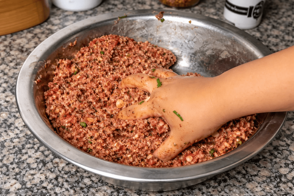 - Add 1–2 tbsp water and mix again (for juiciness).