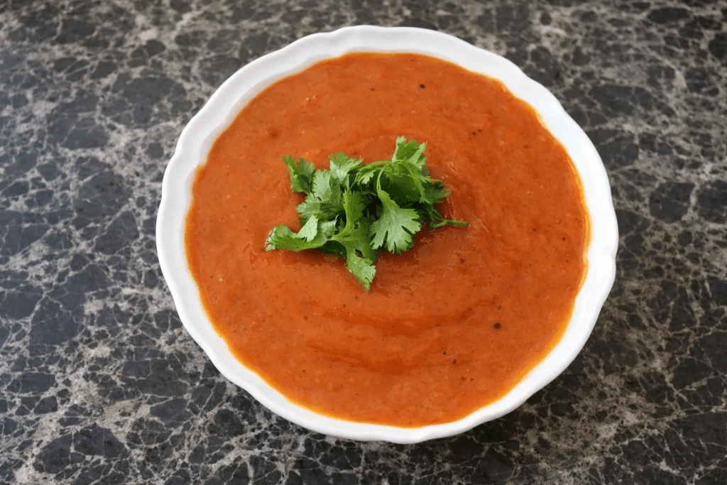 - Blend: roasted tomatoes + seed powder + cilantro + chilies + garlic + ginger + salt + lime zest/juice.