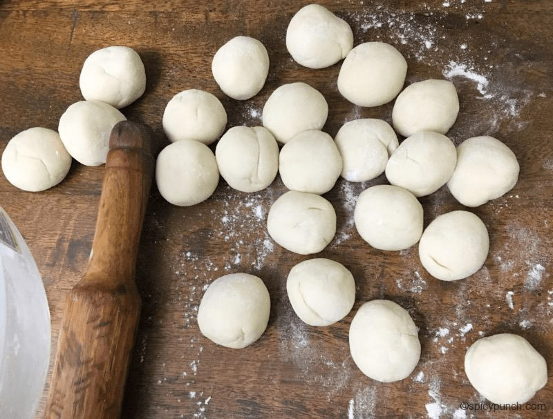 Rule of thumb: you want a firm-but-pliable dough (slightly stiffer than naan dough), so the wrappers stay thin without tearing.