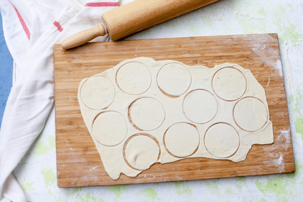 - Flatten each piece and roll into a thin circle: