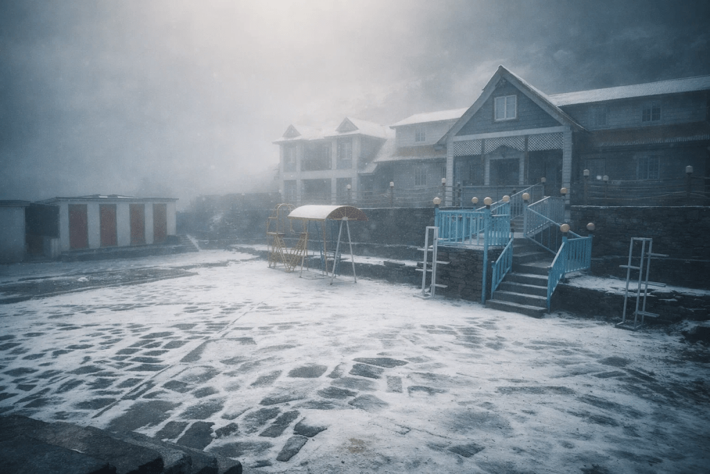 Situated at an altitude of 3,842 meters, Kalinchok received snowfall around 9:00 AM for nearly an hour, followed by another spell starting at 4:45 PM, hotel operators in the area confirmed. This marks one of the season’s earliest and most anticipated snowfall events in Nepal’s mid-Himalayan region.